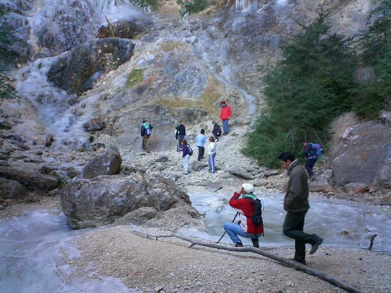 de cascadas de hielo y un techo de estalactitas de hielo.