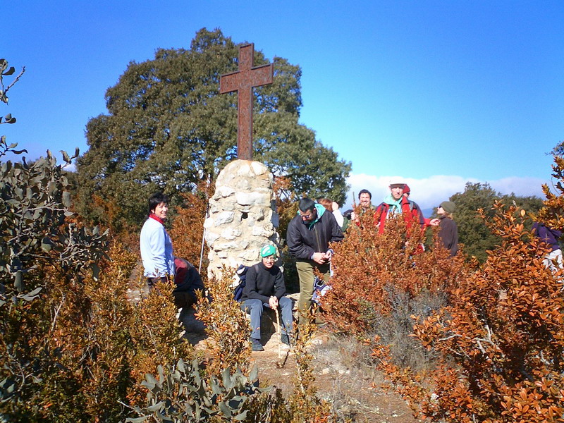 arbustos azotados por el viento, muy frío, hasta la "Creu trencada". Un