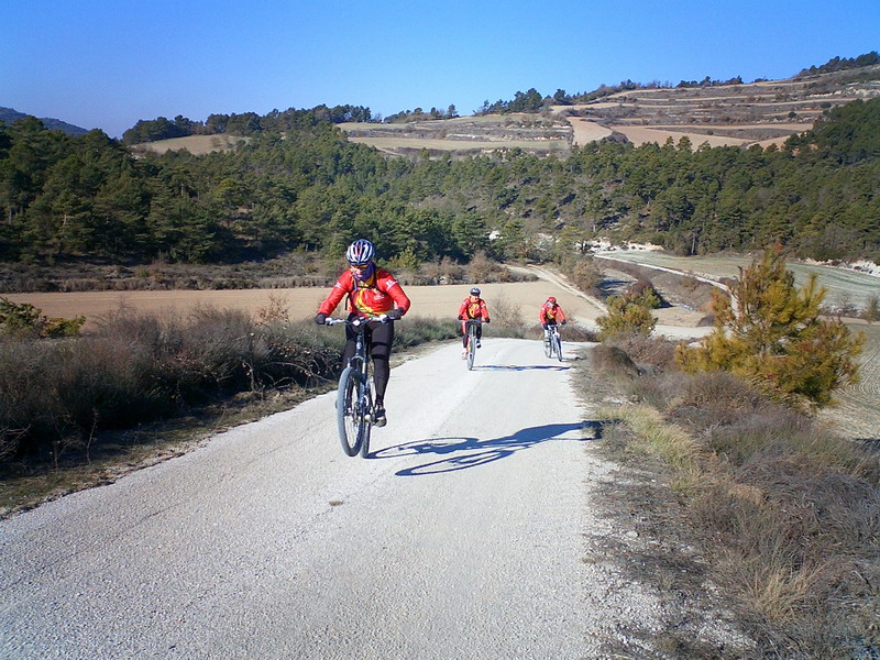 Blanca y con un viento helado, en contra, claro, pedaleamos hasta Conesa.