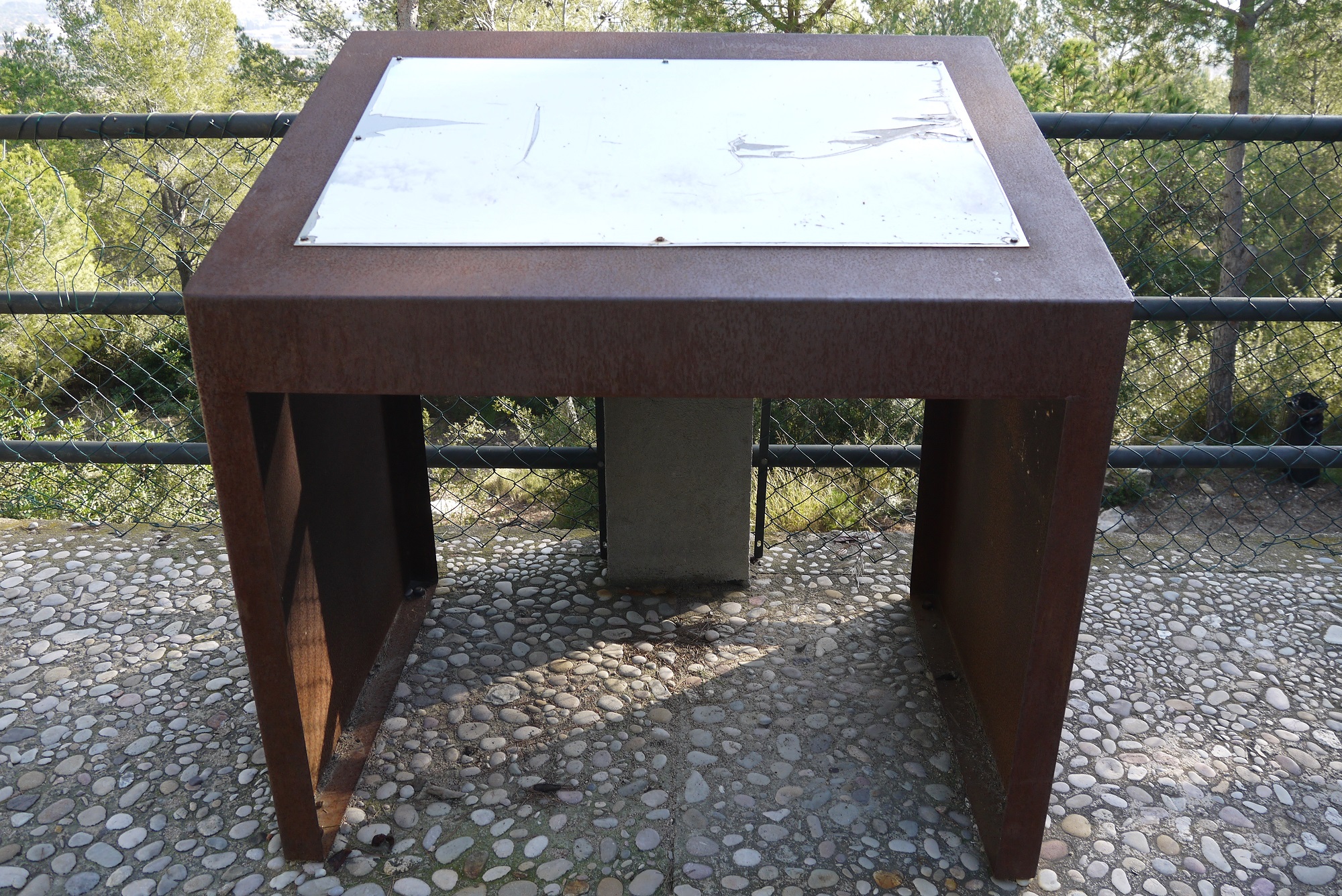 Casi hemos llegado a lo mas alto. Podremos disfrutar de una buena vista. A veces los árboles no nos dejan ver. Allí hay una mesa....Si lo hemos hecho bien plantaremos el pessebre...
